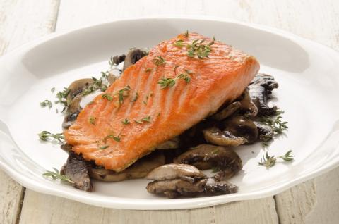 - Divide salmon among four serving plates and top with sautéed mushrooms. Garnish with green onion.