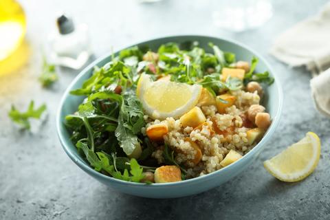 The recipe below is filled with healthy protein from chicken and quinoa and is topped with a tasty lemon basil dressing that gives this salad a light and creamy flavour. For those that are vegan or vegetarian, it can easily be adapted by replacing the chicken with a can of chickpeas instead. Bon appetit!